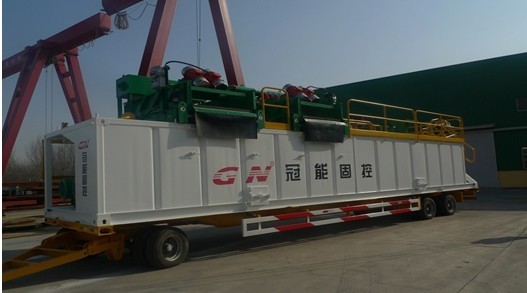 500 GPM泥漿凈化系統具體配置如下: 1)GNZS703直線振動篩 2)GNZJ1S8N除砂除泥器一體機 3)2 臺GNZS6×5-12J砂泵 4)一套滿足于40尺集裝箱運輸的罐體 5)攪拌器和混合漏斗 6)走道,護欄。管匯,閥門等。