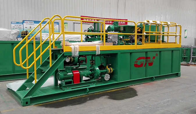 泥漿固控系統(tǒng)中的主體設(shè)備 本套泥漿固控系統(tǒng)的主體分離設(shè)備為一臺(tái)GNZS752新型泥漿振動(dòng)篩和一臺(tái)GNLW223臥螺式沉降離心機(jī)。經(jīng)過(guò)以上兩臺(tái)分離設(shè)備的處理后,可以將泥漿中的細(xì)小顆粒分離出來(lái),從而得到凈化的泥漿。加裝一臺(tái)射流混漿料斗和混合泵以后,就可以完成井隊(duì)泥漿的混配。客戶只要再匹配一臺(tái)發(fā)電機(jī)就可以實(shí)現(xiàn)泥漿固控系統(tǒng)的施工。